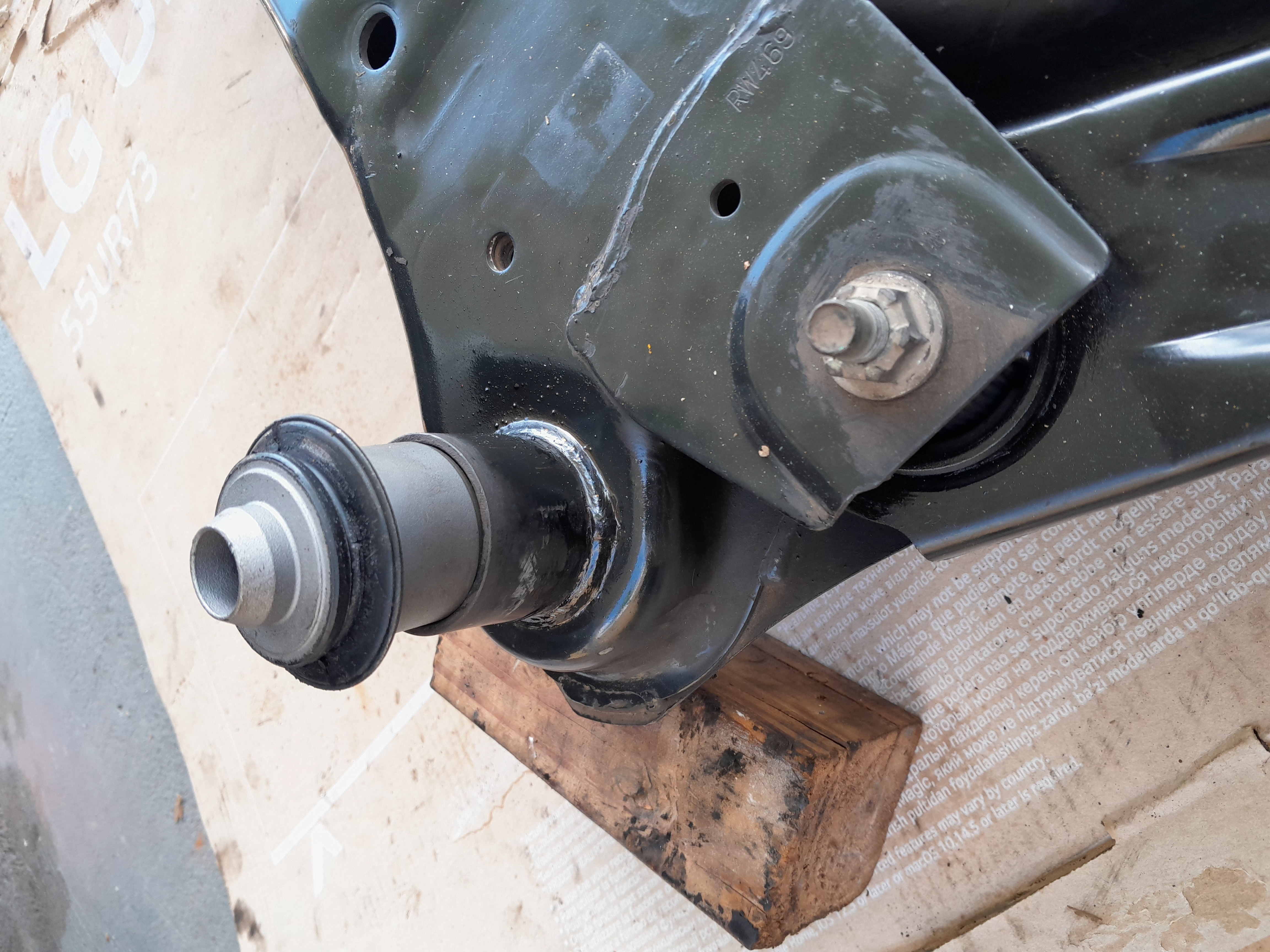 Une astuce si vous n'avez pas le bon diamètre de tube, il faut désolidariser le tube interne du silent bloc de la partie externe qui est emmanchée en force. Si le Silent bloc est bien abimé c'est facile en tapant sur la partie inférieure qui dépasse le caoutchouc va se casser, sur des vidéos j'ai vu des gars qui font fondre au chalumeau le caoutchouc mais à mon avis pas conseillé car cela va abimer le traitement peinture du berceau.
