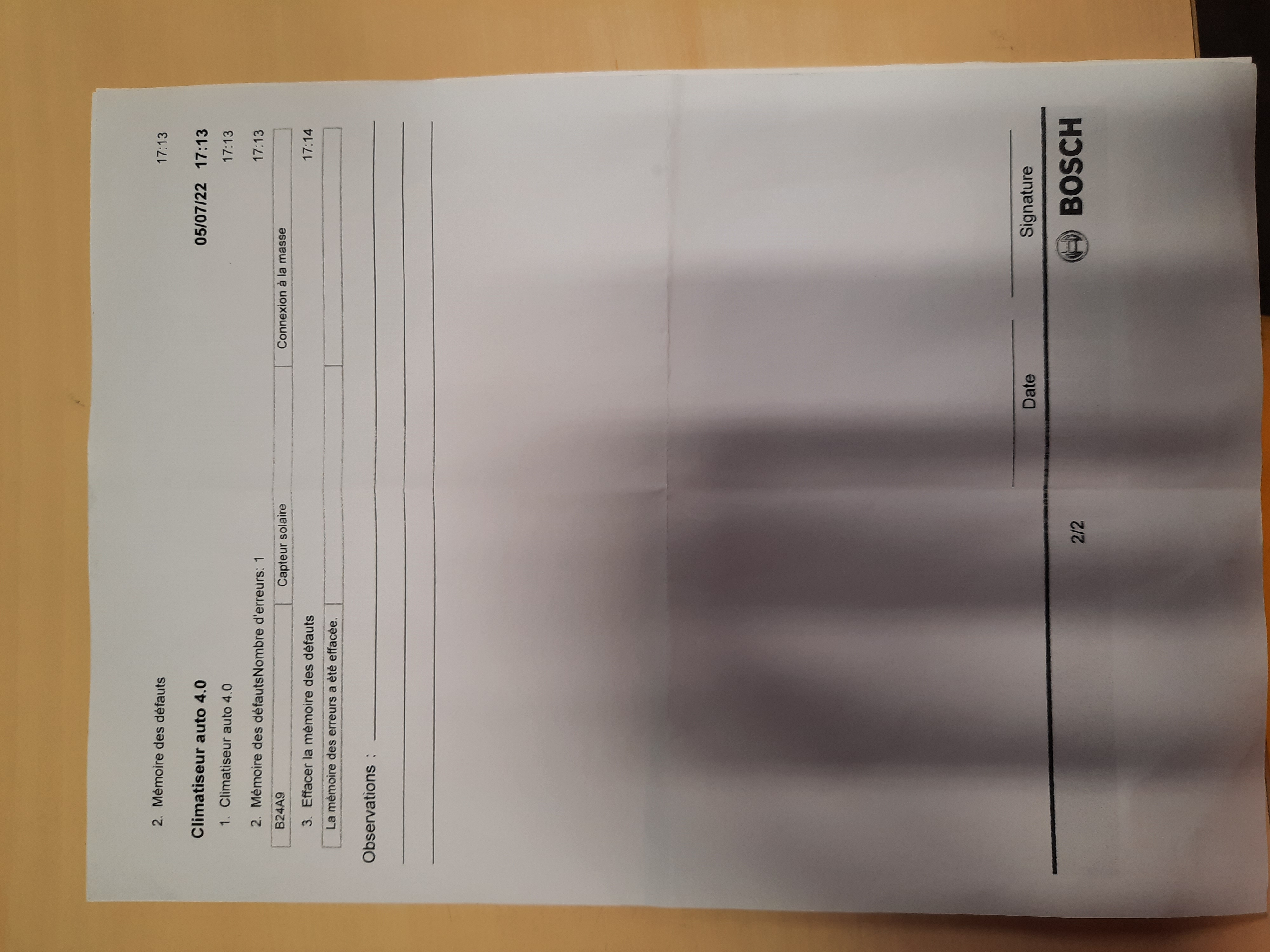 Un Monsieur bien sympathique m'a passé le véhicule à la valise. Il a lancé un diag complet Résultat: tous les défauts qu'il a pu effacer, il l'a fait.